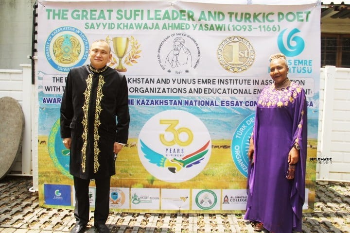 As such, on 3 March 2022, Kazakhstan Embassy in Pretoria in partnership with Yunus Emre Institute, hosted in Johannesburg Turkish Cultural Centre the Special Event dedicated to the Pearl Jubilee of Kazakh-South African Friendship. It was arranged with the Award Ceremony by the results of the Essay Competition for South African schools dedicated to the legacy of Great Sufi Leader and Ahmed Yassawi, in the framework of the celebration of the 30th Anniversary of Diplomatic Relations between Kazakhstan and South Africa.